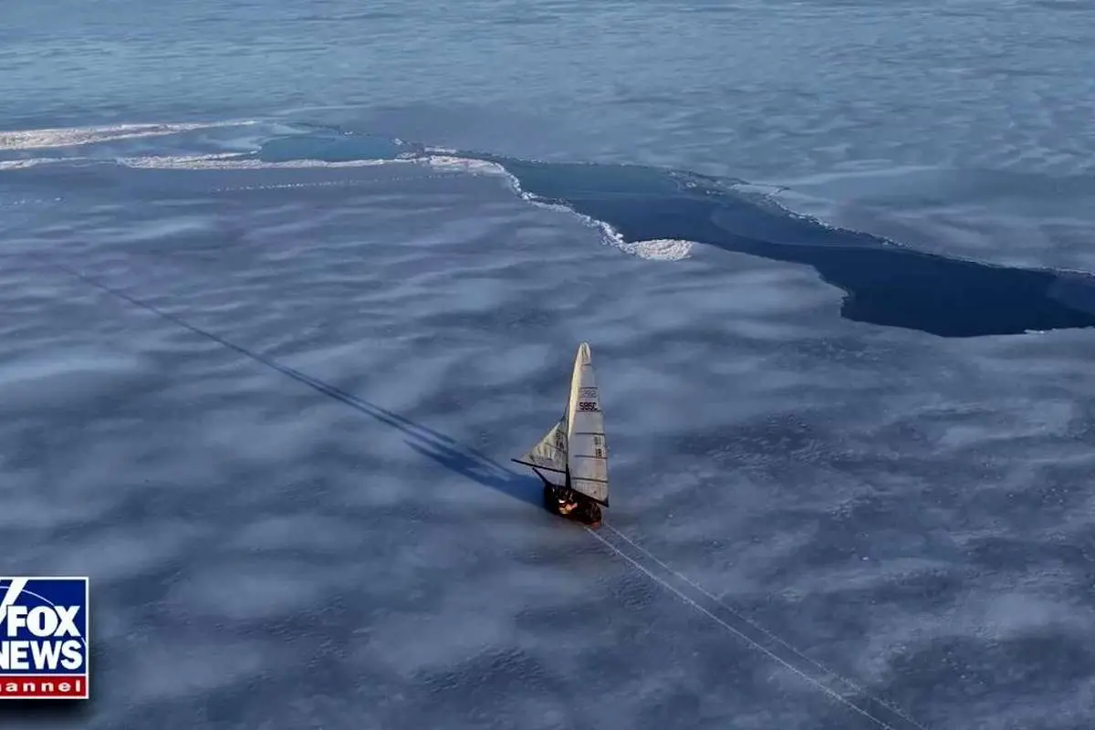 یک قایق یخ قدیمی در خلیج «گِریت ساوث» نیویورک، بر سطح یخ‌زده آب‌ها به حرکت درآمد؛ رخدادی کم‌نظیر که به‌واسطه سرمای عمیق و استثنایی امسال ممکن شد. شرایطی که پس از دهه‌ها بار دیگر این تالاب را به‌طور کامل در یخ قفل کرده است. قایق یخ گونه‌ای قایق بادبانی است که در زیر آن چوب اسکی یا اسکیت‌هایی قرار داده شده تا بتواند بر روی سطوح یخ‌زده بلغزد.